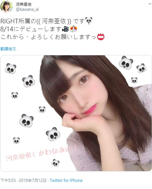 根據日本網路論壇「2ch」透露,今年8月,現年僅19歲的新人女優河奈亞依的出道作品終於要公開,為此,河奈亞依也成立個人官方推特,同時曬出向外界表示多多指教,然而過去的河奈亞依的甜美外表卻總被厚重的眼鏡遮掩。從網友曝光的照片中可見,河奈亞依打扮相當乖巧樸素,也由於視力僅有0.02,讓他不得不隨時帶著眼鏡,然而學生時期,河奈亞依也因為乖巧性格遭遇人際問題,讓他對自己相當沒自信。