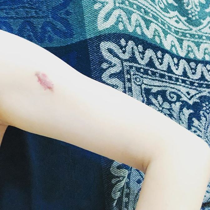 張景嵐昨日在IG po了一張照片,只見白皙的手臂上有一顆鮮明的印記,而她分享道:「我有一顆蟹足腫,在我的手臂上,只要開刀到真皮層,我就會長出紅色的肉,因為身體知道我有傷口了」還提到顏色深淺會隨著身體狀態改變。張景嵐也表示並不打算處理手上的疤痕,因為這可以隨時提醒她沒有人是完美的,包括她自己:「接受自己會害怕是好的,因為反而離自卑產生的自大更遠了些」,樂觀的想法為粉絲帶來滿滿正能量。