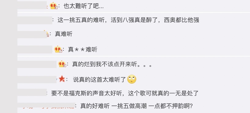 然而在下集節目中,賽制則改採為車輪戰的方式,戰隊將排出3總出場的模式且自行選定要先派哪一組上場,雙方事前都不會知道對方的順序,相當刺激與創新。其中在吳亦凡戰隊中第一輪派出大傻配上福克斯對上,兩人改編演唱過去大傻的作品《一挑五》,但這首歌的改編卻引發網友們熱烈討論,在微博上許多網友都認為這首歌被改編得非常難聽:「說真的這首太難聽了」、「要不是福克斯的聲音太好聽,這個歌可就真的一無是處了」、「真的好難聽 一挑五做高潮 一點都不押韻啊?」