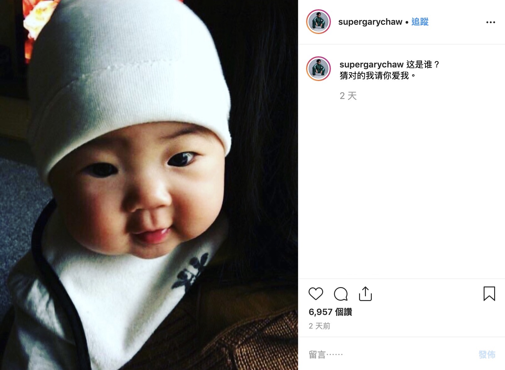 在2014年時曹格帶著Grace參加大陸實境節目《爸爸去哪兒2》,而Grace在節目中天真無邪、率真可愛的模樣讓她圈粉無數,然而在節目播畢後Grace漸漸的就鮮少出現在螢光幕前,僅能靠著曹格和吳速玲發出的照片窺探Grace的近況,近日曹格也在IG上發出一張小孩子的照片,並寫下:「這是誰?猜對的我請你愛我。」,網友們也秒猜出這就是Grace小時候的照片,圓嘟嘟的臉以及炯炯有神的大眼相當可愛。