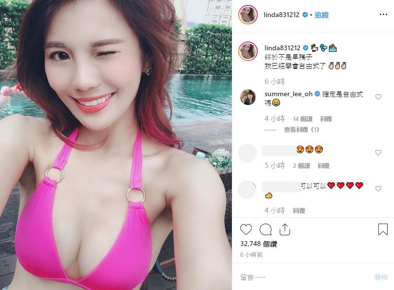 後來琳妲也發文:「終於不是旱鴨子,我已經學會自由式了」,並且再度送正面照,令網友紛紛暴動留言:「凡凡好像每個地方都大一個size」、「凡凡很棒」、「凡凡真美」、「既可愛又美」、「這泳池太了不起了哈哈哈」、「都越來越美了」、「0蛋凡凡真的可愛」。