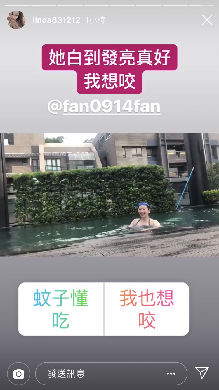 而後來琳妲也在限時動態中公開凡凡游泳的影片,只見凡凡在陽光下肌膚白皙透亮,讓琳妲忍不住直呼:「她白到發亮真好,我想咬」,而凡凡也對著鏡頭露出燦笑,展現自信的魅力。