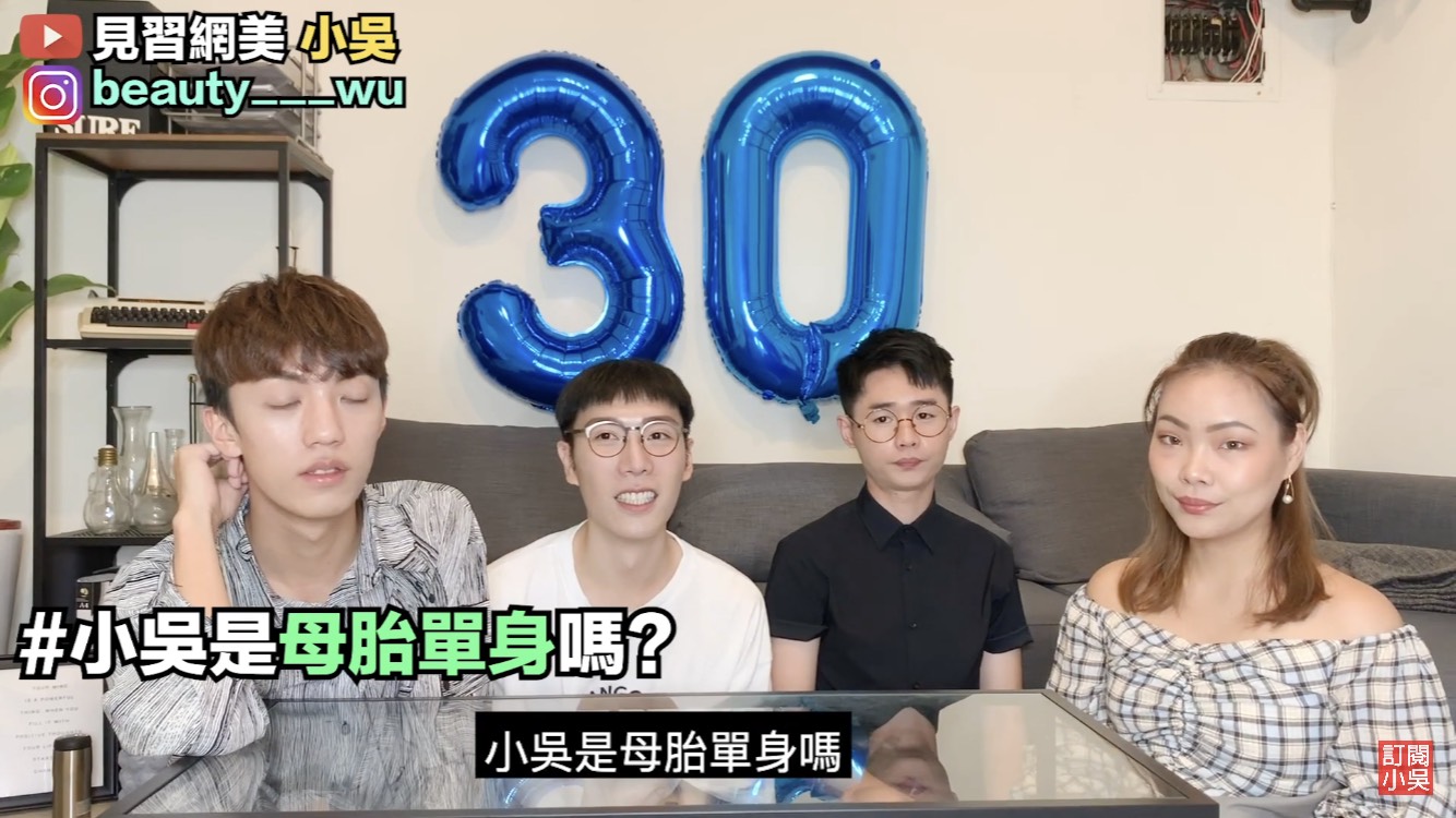 「見習網美小吳」是一名YouTuber,因擅長解析12星座,所以號稱「新店唐綺陽」,而他的朋友有Yoyo、聖元、卡特等人,幾人時常一起拍攝實測、搶答系列影片,搞笑幽默的風格深受粉絲喜愛,頻道目前累積34萬訂閱。小吳在近日上傳30萬訂閱Q&A問答影片,不少人對於小吳的感情狀態感到好奇,其中有網友詢問小吳在大學時期是否喜歡過聖元,沒想到小吳的回答竟讓Yoyo大喊: Oh my god!