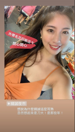 當天晚上,辜莞允在精誠夜市打卡,大讚精誠夜市很棒,不僅去排隊買了地瓜球,還外帶毛豆準備回飯店吃。格外引起網友關注的是,回到飯店後,辜莞允衣服也沒換就直接躺上床,原本就很低胸的小背心,支撐不了她豐滿的上圍,黑色的小可愛往下一滑,渾圓的半球和事業線乍現,辜莞允對著鏡頭眨眼露出燦爛笑容,看上去心情相當愉悅。