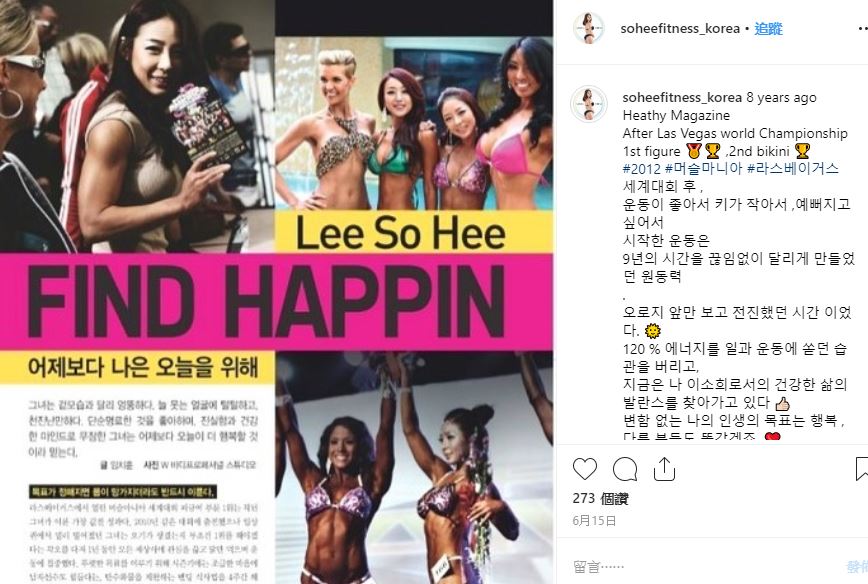 事實上,李素熙的身形並非纖細不過卻相當勻稱而有線條,除了因為本身就有瑜珈專業,他也相當注重飲食甚至不吝惜公開製作過程,然而2012年的李素熙身形又比現在更加精實,更曾參與拉斯維加斯的世界盃抱回比基尼組亞軍和體態冠軍,也幫助他成為不少雜誌的封面人物新寵兒。