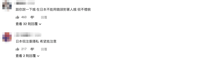 很多人有提醒我在影片中放大了路人的的臉,很沒有禮貌,的確在日本是很沒有禮貌的行為。