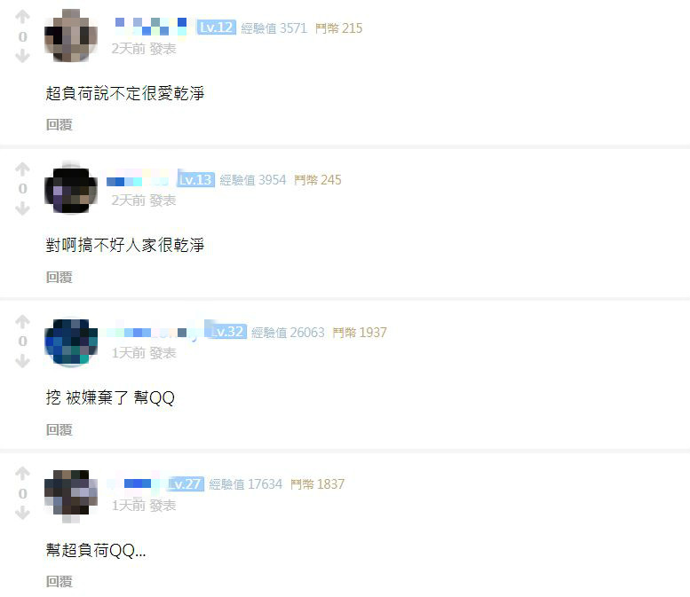 愷蒂喵這段直播被網友PO上網,不少粉絲替超負荷說話:「超負荷說不定很愛乾淨」、「挖 被嫌棄了,幫QQ」、「未看先猜別人髒,自己內心也差不多髒」、「我倒要看看妳多乾淨」認為愷蒂喵沒有深入了解就直接說別人髒的行為不太好。