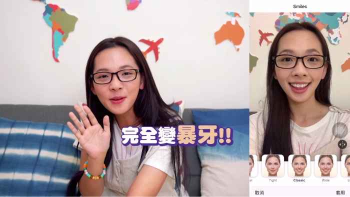 滴妹除了變老特效以外,也測試使用其他效果,沒想到調整笑容的部分讓滴妹再度大崩潰,「暴牙滴妹」醜到本人大喊不能用!另外,滴妹也實測變髮色以及化妝效果,各種不一樣的滴妹也讓粉絲留言告白,「滴妹!!你不可以變老,因為你是永遠的18歲!」、「不管滴妹變怎樣我都喜歡」、「滴妹是我所知額頭最漂亮的Youtuber,千萬別留劉海」。