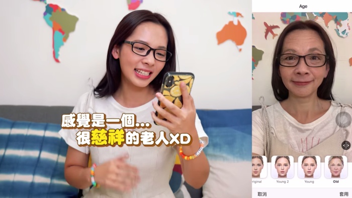 近日網路流行一波「變老」風潮,不少Youtuber都上傳自己變成老人的照片娛樂粉絲。滴妹特地將使用變老App的過程拍成影片,讓粉絲們看看各種面貌的滴妹!結果第一張變老照立刻讓滴妹現場崩潰,直呼自己是「慈祥的老人」。