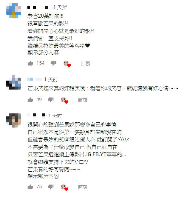 不過芒果也提到,自從來台灣後交到許多朋友,讓她很開心,而她甜美的笑容也感染不少網友,紛紛留言:「芒果笑起來真的好甜美哦,看著妳的笑容,就能讓我有好心情~~」、「很喜歡芒果笑的樣子,芒果的笑容很有魅力,眼睛也是笑笑的超喜歡,芒果加油」,認為她的笑容很迷人,可以治癒人心。