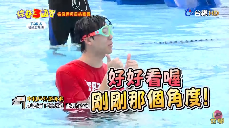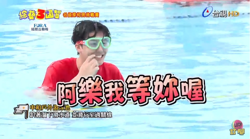 在玩滑水道關卡時,阿樂從上面俯衝,趴在板子上相當養眼,渾圓胸型一覽無遺,風田直接在滑水道下方等待阿樂滑下,被其他來賓大虧:「回去找舒子晨啦!」等到阿樂滑下來時,風田雙手比讚狂說:「好好看喔!剛剛那個角度!」