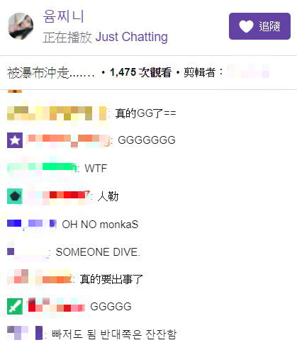 韓國人氣實況主「윰찌니」,過去因直播穿企鵝裝跳舞,可愛的模樣在PTT掀起熱議,所以被暱稱為「企鵝妹」,而她不僅擁有甜美的外型,更是精通中、英、韓三種語言,並時常切換不同語言和網友交流,成功吸引許多粉絲關注,目前Twitch擁有15萬追蹤。企鵝妹昨天和朋友到溪邊玩水,沒想到玩到一半竟被瀑布沖走,而且當時直播還開著,讓粉絲全部嚇傻:GG了…