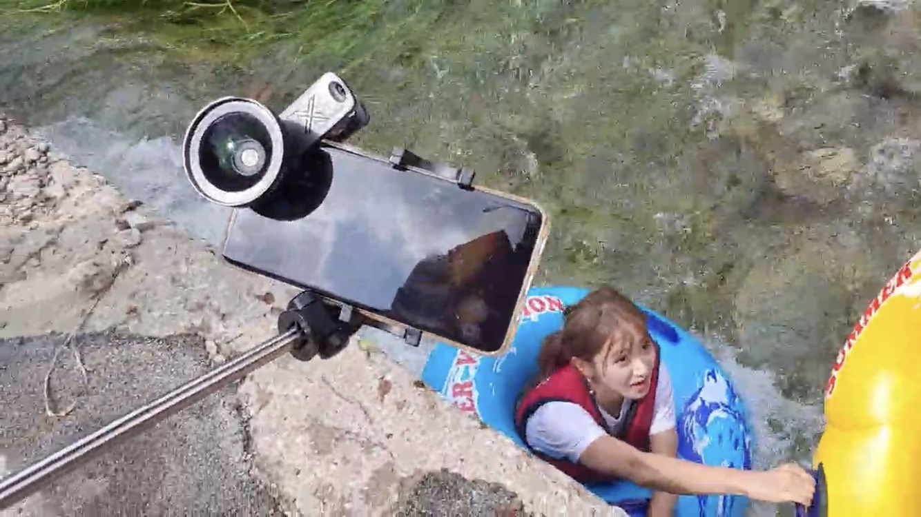 瞬間消失在螢幕!韓國「企鵝妹」直播戲水慘被「瀑布沖走」 網嚇傻:真的出事了…