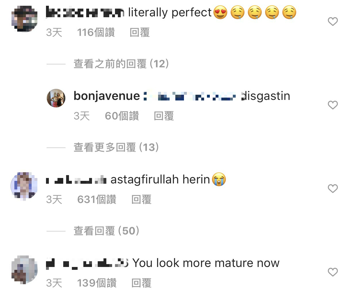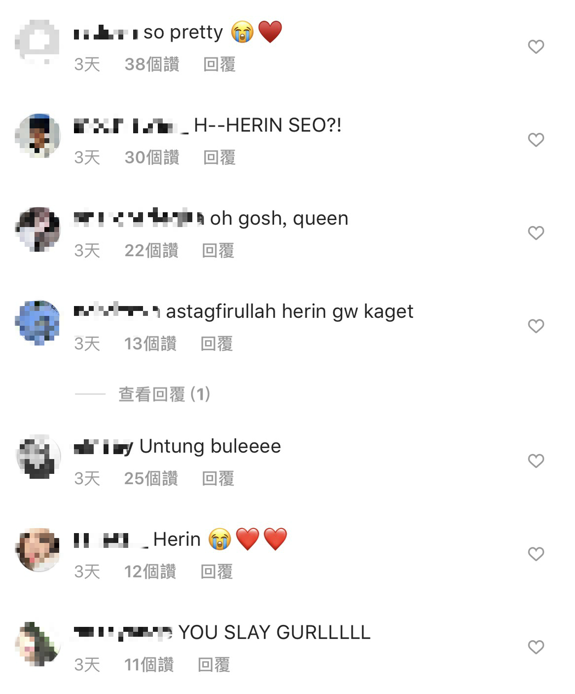 看到全新風格的Herin,粉絲留言表示,「你現在看起來更成熟了」、「太辣了犯規」、「我的迪士尼公主已經長大了」。和過去清純模樣完全不同,讓粉絲驚訝Herin不僅長大也更成熟了。