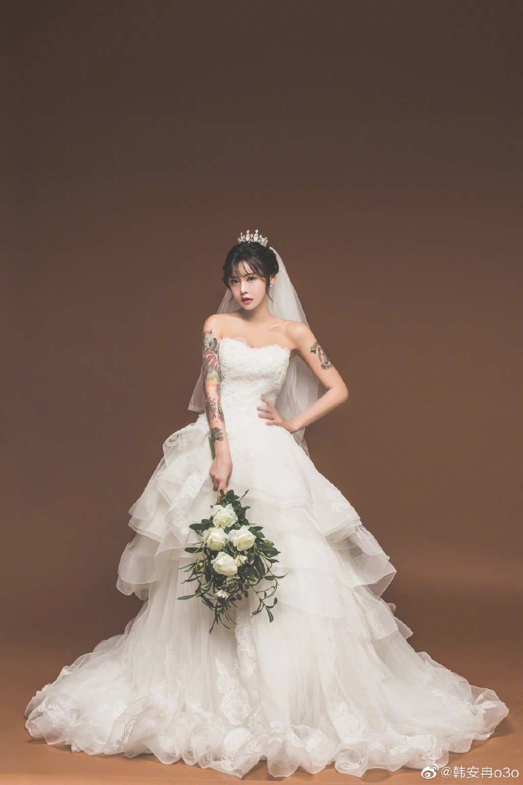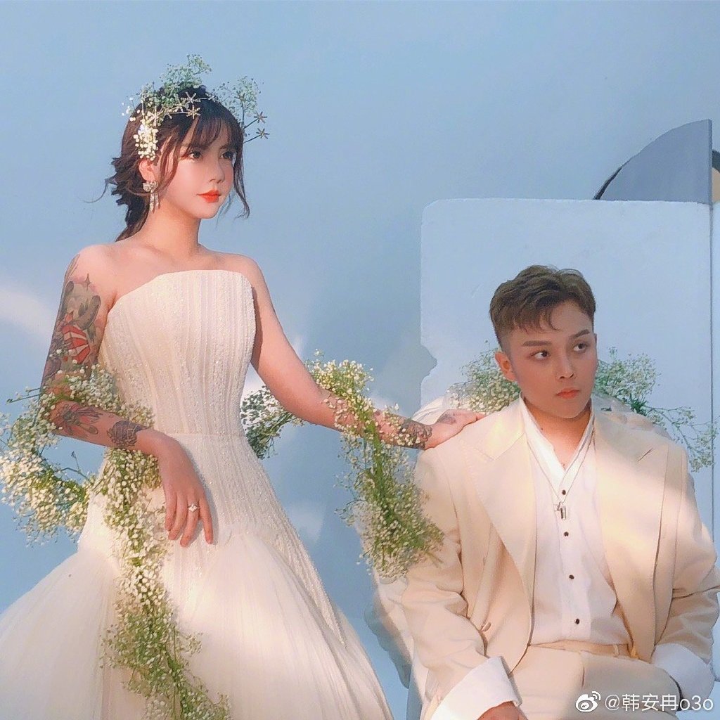 在29號時韓安冉也貼出和老公小豬的浪漫婚紗照,照片中韓安冉穿著一件白色的平口婚紗,胸前的造型也相當有設計感,類似貝殼的樣式看起來相當典雅,然而有一張側身的照片可以看出胸前似乎有些空杯,韓安冉的姿勢也有些駝背,網友們也紛紛留言:「有點嚇人脖子 衣服上邊是太空了嗎」、「圖二不好看……駝背的感覺……而且前面空空的怎麼回事」、「圖二好像空杯了有點尷尬」