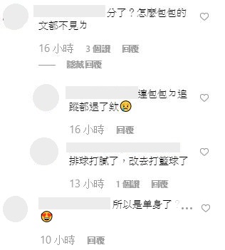日前有粉絲發現閃亮亮IG中的放閃照全數消失,在貼文處留言詢問閃亮亮:「分了?怎麼包包的文都不見ㄌ」、「所以是單身了嗎?」更有網友指出閃亮亮連黃包包的IG都退追蹤了,讓他們分手的流言再度瘋傳。