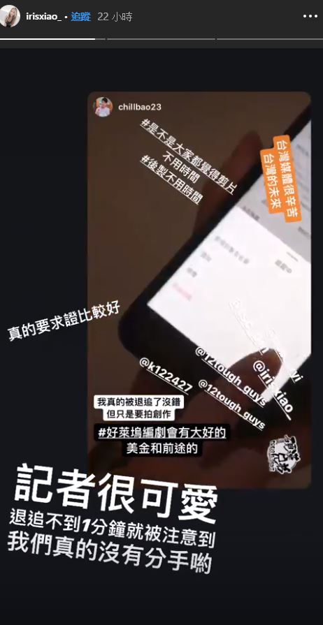 而昨黃包包也在IG限時動態中再度分享影片,並且表示:「我真的被退追了沒錯,但只是要拍創作」而閃亮亮也轉發該則動態,打上:「記者很可愛,退追不到一分鐘就被注意到,我們真的沒有分手喲」,澄清兩人還在一起,並且呼籲大家,「真的要求證比較好」,讓喜歡兩人的粉絲鬆了一口氣,事實上現在硬漢兄弟的頻道也常常分享新影片,關心兩人的粉絲也可以訂閱頻道喔!