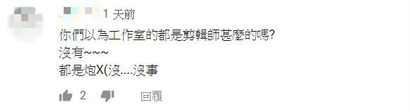 不過貝莉莓笑說她只是在反串,但還是有不少網友留言:「我要當美莓的第一個石包友~」、「你們以為工作室的都是剪輯師甚麼的嗎?沒有~~~都是炮X」、「我來徵炮友了」,開始排隊報名想當炮友,相當搞笑。