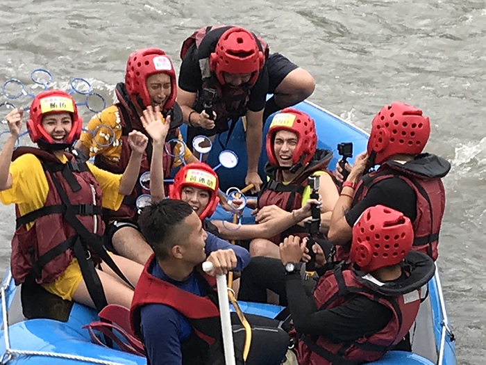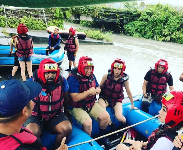 一行人來到宜蘭知名景點安農溪,來到這當然不會錯過刺激的泛舟,女藝人下水前都先換上了「泳衣戰袍」,黃沐妍的泳衣深藏小心機,泳衣條紋設計,讓她渾圓的酥胸若隱若現;而鮪魚的高叉泳衣,也讓她白皙修長的美腿更加性感,兩人好身材一覽無遺,但因水流太急,為了安全考量,教練馬上要她們穿上救身衣,泳裝戰袍只現身不到幾秒鐘「被消失」。