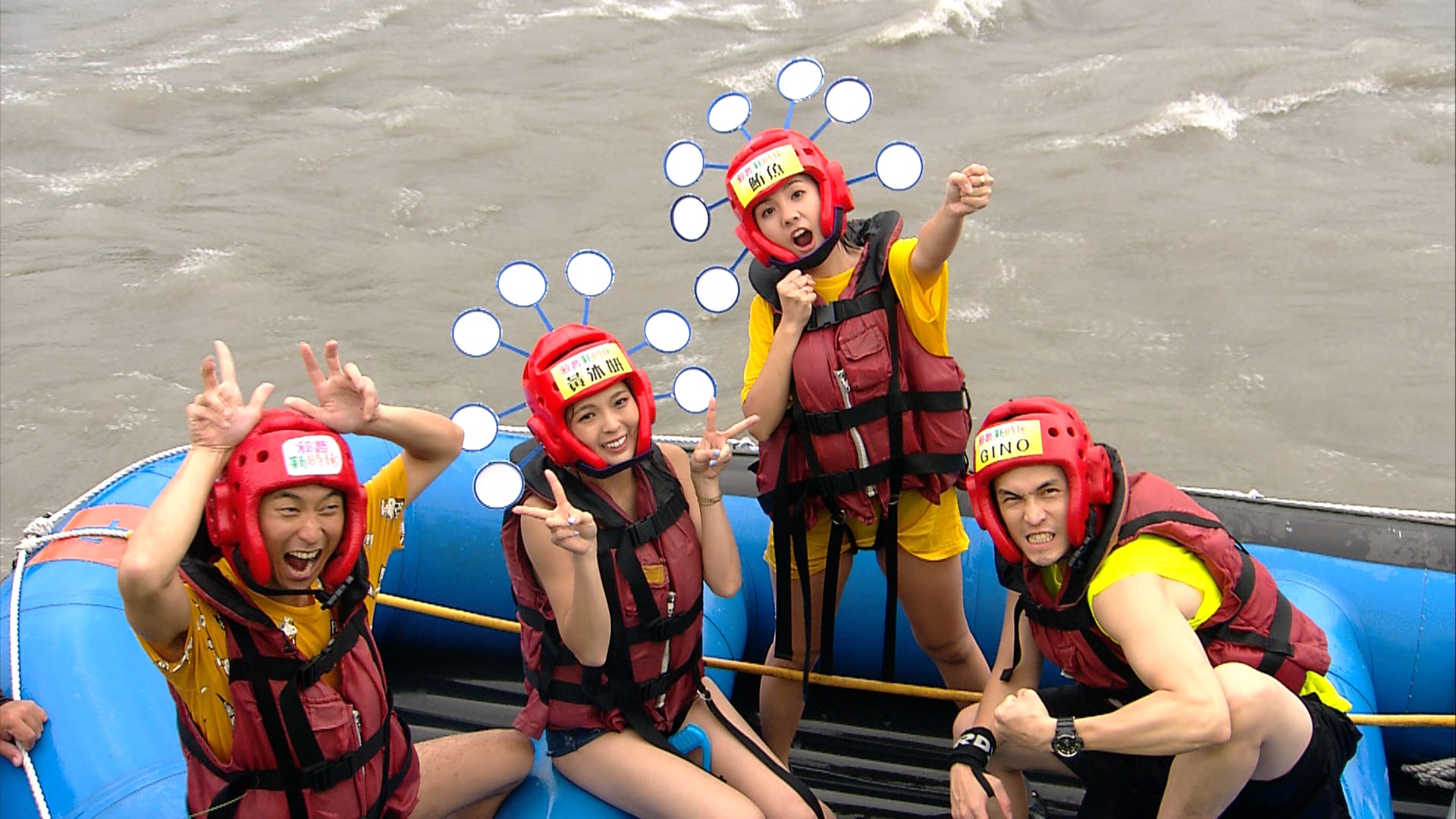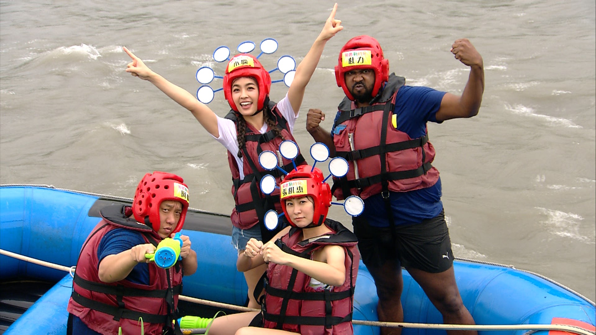 而面對快速的水流、俐落的急流,杜力整個玩心大開,不停地擺動著泛舟小艇,本身就懼水的張棋惠遇到杜力失控的舉動,崩潰哭著「NO、NO、NO」叫個不停,搞笑的求饒模樣讓現場人員笑翻。接著來到全新遊戲「來人啊!護駕!」,兩隊須在激流的溪水中,用水槍將對方安全帽插著夜市撈魚網紙射破,遊戲一開始戰況馬上就白熱化、勝負互有往來,為了躲避敵隊的攻擊,小嫻一時緊張往前撲,沒想到這一撲就撲向攝影師懷裡,讓攝影師嬌羞的臉都紅起來了,爆笑連連。