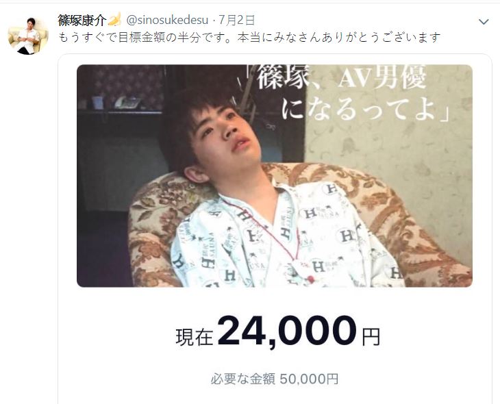 根據日本媒體的訪問報導,這位年僅20歲的「篠塚康介」其實在去年六月中之前都還是「處男」,而他之所以能有這麼大的轉變,全是因為一名皮條客。當時,「篠塚康介」於池袋,遇到了這名皮條客,便相信他口中所說「只要花12萬日圓(約台幣3.4萬元)就能與AV女優發生關係」的話,不料這卻是一場騙局,他被騙了錢,卻什麼也沒得到。