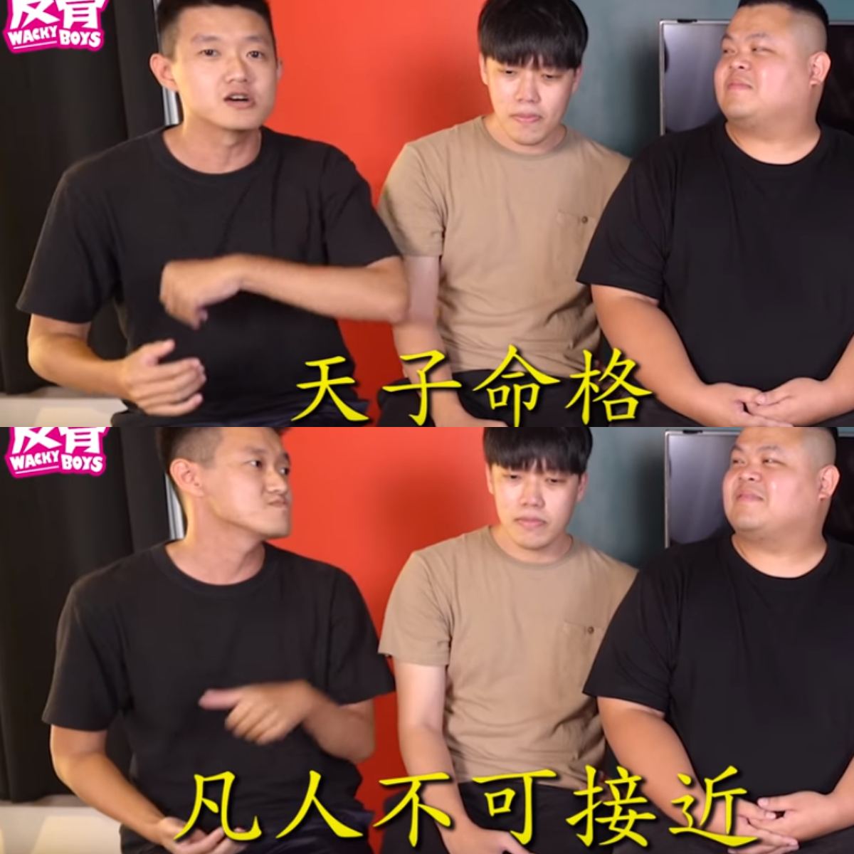 影片一開始先談戀愛次數多寡,狠愛演直回「噢!厲害的」,不過蛇丸大聲自信地說「母胎單身」、「我單身」,讓身旁的牛排拍了蛇丸的肚子說「你這樣會破梗拉!」,孫生趕緊問:那這樣子你要怎麼說啊?沒想到蛇丸竟說出「我喜歡背叛朋友」,一瞬間讓大家沉默以對,牛排只好趕緊打圓場說「立馬無言吧~」。