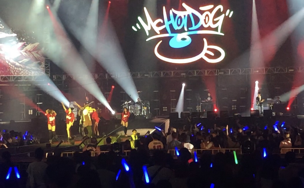 唱到〈我愛台妹〉更是讓現場嗨到極點,熱狗找來4個火辣性感的舞者,上半身穿著一件輛紅色的寬鬆的上衣,沒想到跳到一半,舞者竟然把上衣給脫了,只剩下超短版的小可愛,下半身也只有一件黑色小褲褲,讓現場尖叫聲不斷,不僅大飽耳福,眼睛也吃了不少冰淇淋。