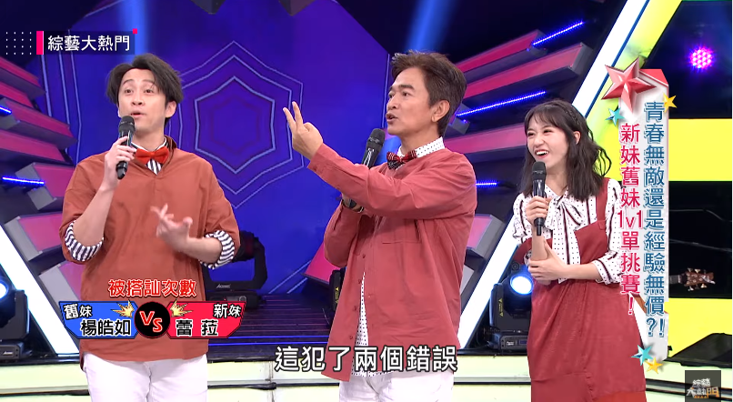 吳宗憲看了趕緊出面緩頰,表示蕾菈犯了2大錯誤,第一「叫姊姊」就是大忌,何況是大姊,接著說「我們有見過嗎?」這句話更是嚴重,在演藝圈裡就不應該有這種疑惑,「藝能界最重要的就是見面就要先裝熟!」
