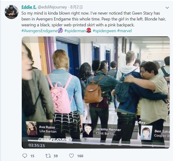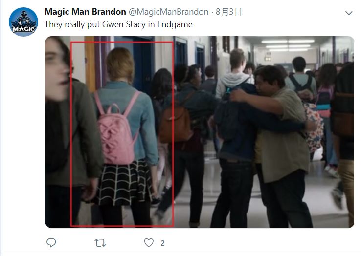 原來,影迷們所發現的是,在影片末段,蜘蛛人彼得帕克返回學校後,與昔日好友涅德(Ned)交談的情節,在這段影片中大多數人都把目光聚焦在兩人相見的畫面上,但經過影迷們一次、兩次的觀看後,影迷們開始注意到更多的細節,因此就有人指出在學校的畫面中,曾出現過兩次「關史黛西」(蜘蛛人的初戀情人)的身影,分別是「關史黛西」身穿黑色蜘蛛網短裙,背著粉紅色背包,看向遠處的身影,以及蜘蛛人和涅德相擁時,「關史黛西」經過兩人的背影。