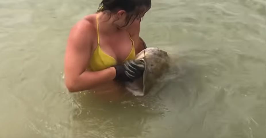上月28日,漢娜和一行人共乘一條船到河邊示範盛行於美國南部的極限釣魚法「noodling」徒手捕魚,漢娜更一人扛起重達40英鎊(相當於18公斤)的巨型鯰魚合照。影片中,可見身旁男性友人皆跳進充滿泥濘的池塘裡抓起一條條手臂大小的鯰魚,漢娜也僅帶著手套就跳進池哩,接著手臂一撈起就是一條大鯰魚正將他的手臂完全吞沒,所幸該條鯰魚並沒有牙齒才讓漢娜免於受傷,甚至還能將它扛到肩膀上拍照。
