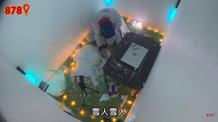 878發明家在室內搭好保麗龍屋,開始佈置屬於的冷凍小屋,當雪機一開的剎那間,立刻就聽到878發明家大喊,「看,超冷!」接著開心地在裡頭玩雪、堆雪人,自己玩得不亦樂乎,當時冰屋的溫度已來到零下5度,他萬萬沒想到接下來將會經歷一場「放送事故」。