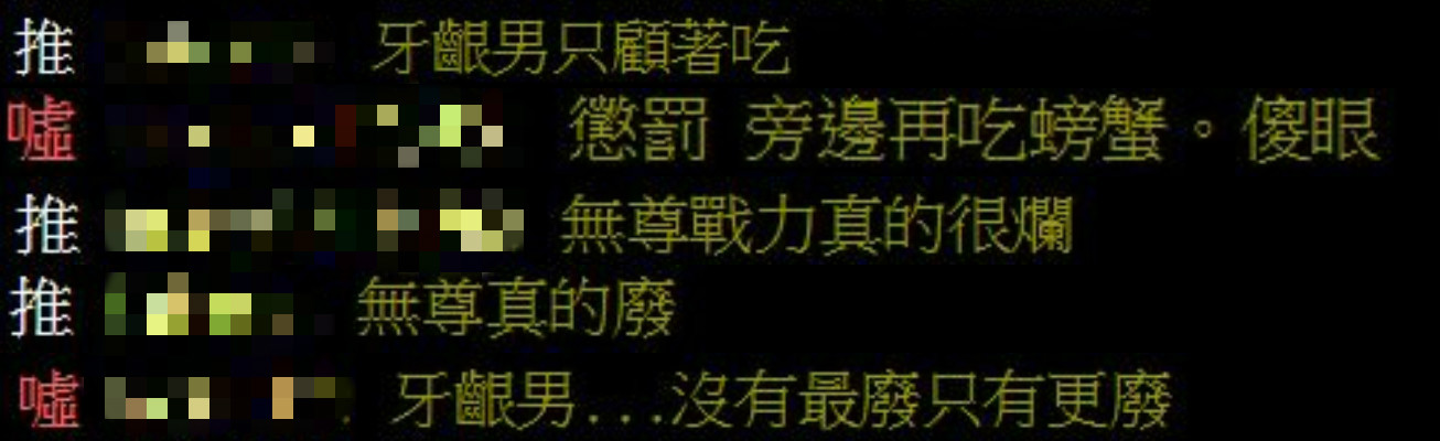 無尊解釋,他因為不甘心所以怒吃,但這段也讓網友們看得好生氣,怒批他平時就沒什麼戰力,隊員被懲罰他還顧著吃:「牙齦男只顧著吃」、「牙齦男真的是廢咖」、「牙齦男比惟毅博焱廢太多了」、「牙齦男才該進廢咖聯盟」、「沒有最廢只有更廢」、「讓人看了有點怒」、「無尊真的廢」、「懲罰旁邊在吃螃蟹。傻眼」。