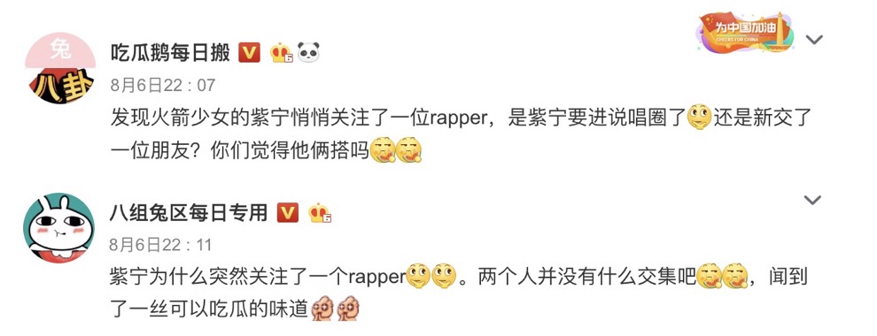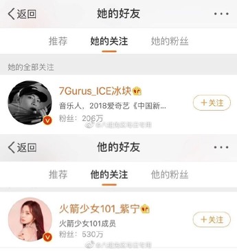 2018年時參加嘻哈節目《中國新說唱》最終獲得第3名的選手「ICE」因精湛的實力而爆紅,在節目播畢後ICE也持續進行創作,也和許多人合作,像是他和GOT7的成員王嘉爾合作,兩人在三小時內完成一首新歌《Red》,精湛的音樂天賦令王嘉爾感到相當吃驚。在昨日有許多娛樂博主發現ICE和火箭少女其中一位成員突然互相關注,也引發網友熱烈討論。