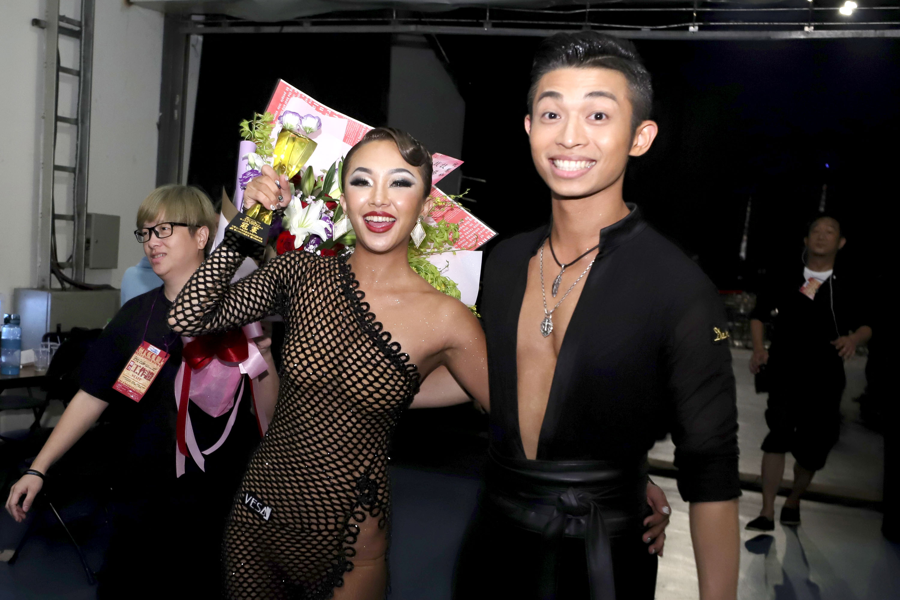 不僅如此,賴慧如當天穿著驚豔全場的國標舞衣現身小巨蛋比賽現場,從頭到腳都是透視的網狀設計,左腳開岔還開到腰上,性感指數爆表,讓賴慧如玲瓏有緻的身材一覽無遺,完美的胸線與臀部曲線完美展現,讓人直呼「太不科學」!賴慧如說:「直到現在維持去運動房健身的習慣,一週還安排3、4堂國標課,我還是用魔鬼般的訓練維持身材」,要求完美的她讓大家說這件超貼身「漁網衣」只有她能駕馭,從國標舞最高殿堂「黑池」買回來的名牌「VESA」超昂貴舞衣被說成「漁網衣」,讓她哭笑不得,賴慧如笑說:「上次出席記者會手工訂製舞衣跟這次比賽的兩套專業舞衣,都是自己買的,要價十幾萬都是老公買單,感謝老公疼愛」,甜蜜互動讓人印象深刻。