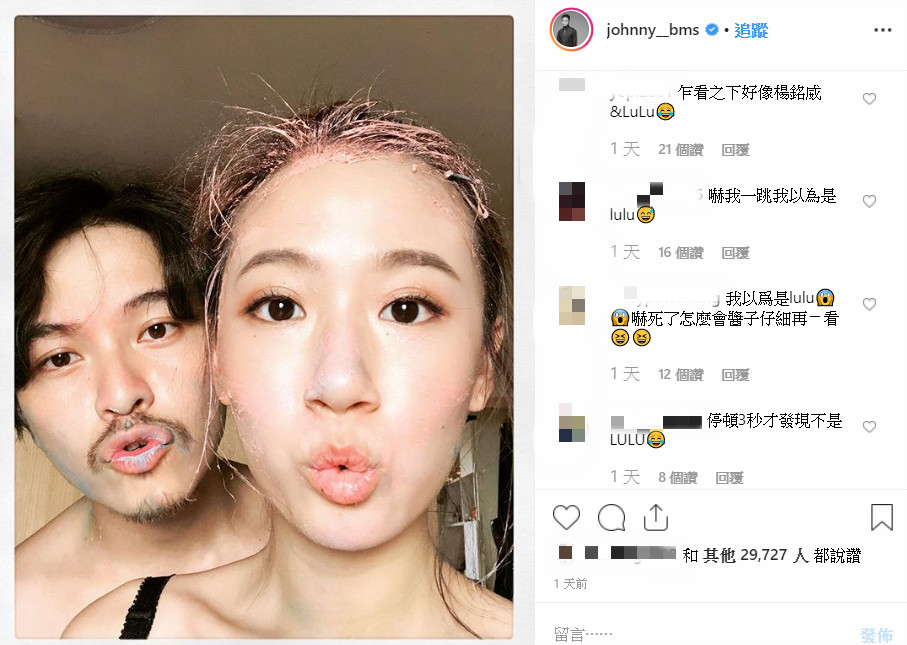照片曝光後,沒想到網友們全歪樓,所有人都嚇到大喊︰「這張好像LuLu!」、「我以為是LuLu~驚人」、「嚇我一跳,我以為是LuLu」、「停頓了3秒才發現不是LuLu」、「嚇死了,我以為是LuLu+1」、「天啊!真的以為是LuLu!」而楊銘威也在留言串搞笑tag LuLu的IG帳號,還搞笑說「你怎麼看」。