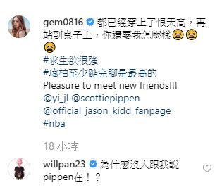 但當鄧紫棋站在NBA球星Jason Kidd、Scottie Pippen旁後,一瞬間變成小矮人,她不甘心站上桌子上,發現就算加了恨天高,身高居然還是比不過身高211公分的NBA球星易建聯,讓她大喊:「你還要我怎麼樣...」,但也不忘笑虧一起站在桌上的潘瑋柏踮起腳起碼是全場最高的。潘瑋柏也崩潰回應:「為什麼沒人跟我說Pippen也在!?」,網友也被他們逗趣的互動笑翻,紛紛安慰:「妳的身高叫可愛,最萌的身高差!」、「矮又怎麼樣,還不是唱歌好聽?」