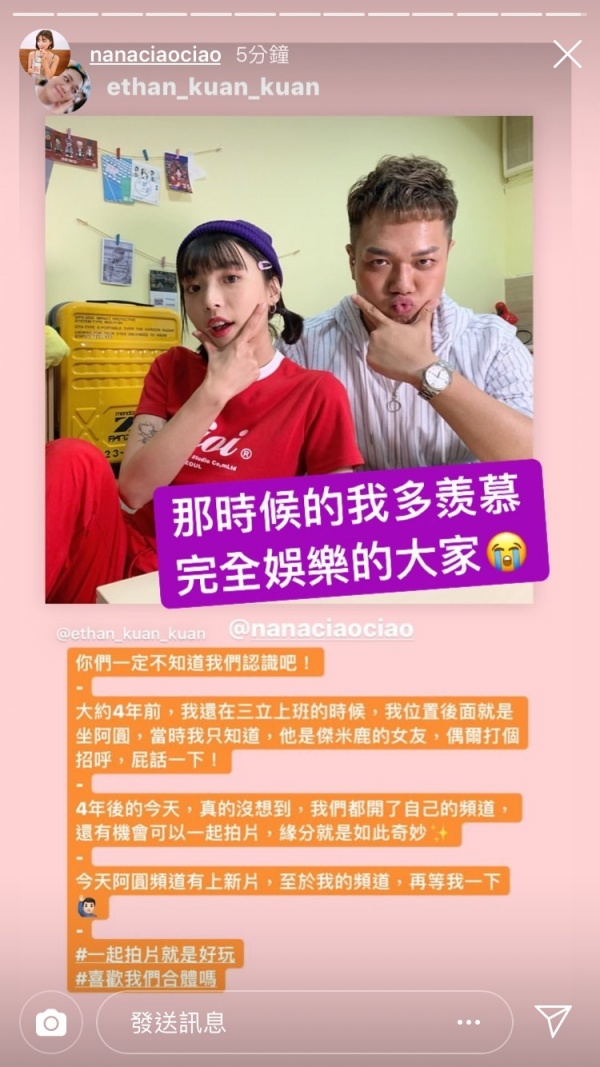 Youtuber「關韶文(關關)」日前在限時動態貼出和阿圓的合照,並寫下兩人的緣分,「大約4年前,我還在三立上班的時候,我位置後面就是做阿圓,當時我只知道她是傑米鹿的女友,偶爾打招呼屁話一下!」