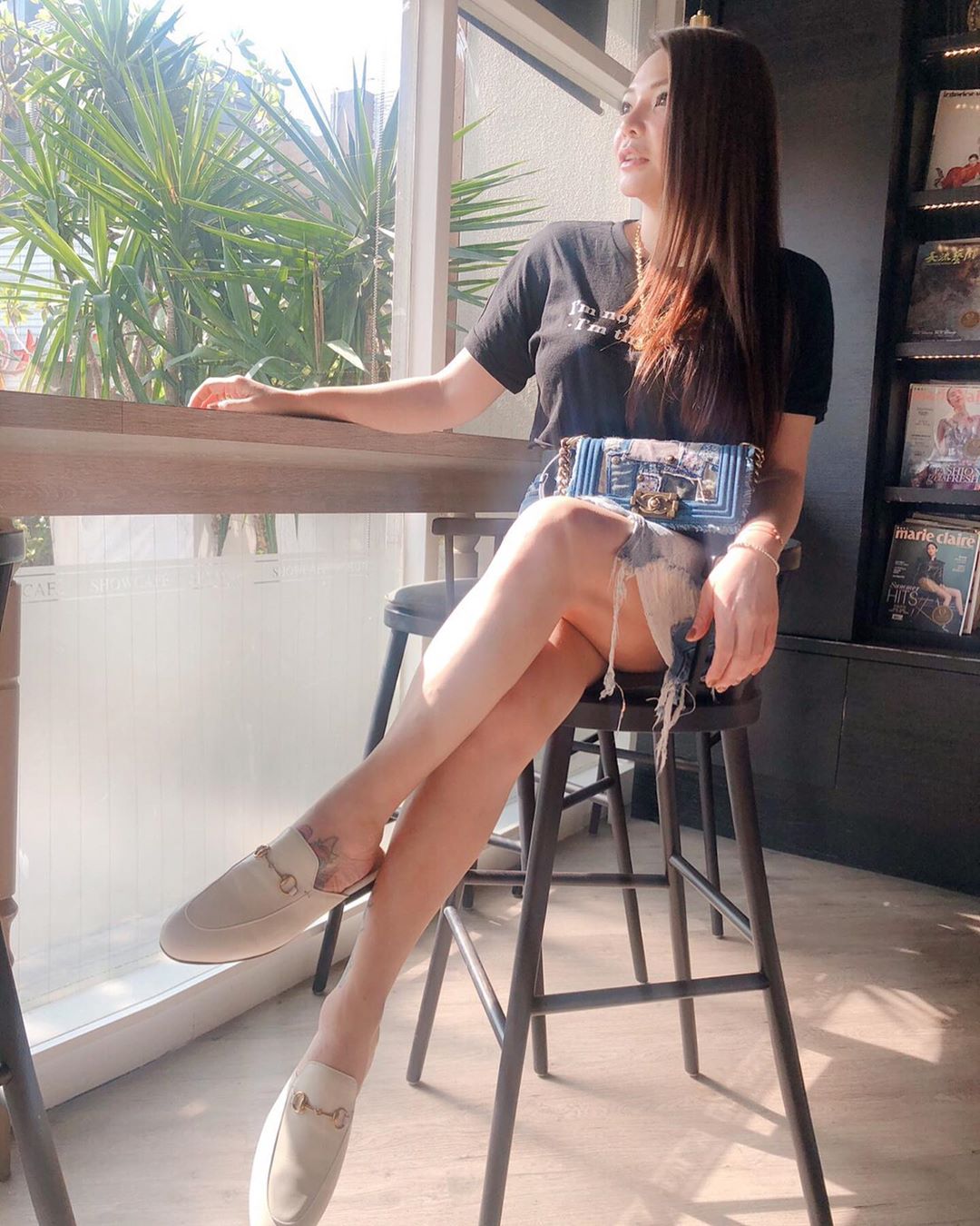 照片中的小甜甜一頭長直髮,身穿簡單黑色短版上衣,配上時下流行的丹寧牛仔破褲裙,加一雙簡單的白鞋,拍照角度由下往上,讓坐在椅子上的小甜甜露出一雙大長腿,皮膚白皙,腿上完全沒有一絲贅肉,腿根若隱若現、十分性感,讓網友也不禁讚嘆「那個裙子穿起來特別好看」、「水噹噹」、「越來越瘦,真的好棒!」也替自我加油打氣「看到你從肉肉的蛻變成美美的,讓我有信心自己也可以」