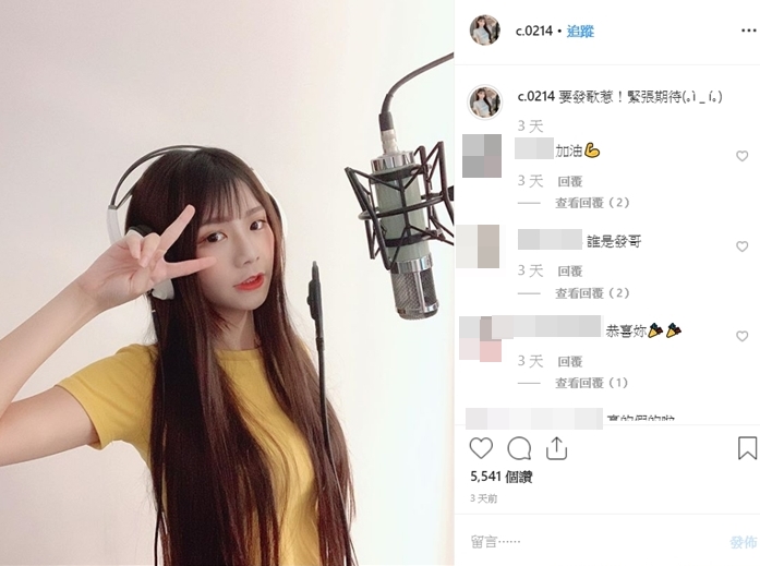 事實上,青青前幾天就在IG貼文中透露,「要發歌惹,緊張期待!」向網友們說出即將會有cover的喜訊,同時她也在限時動態中貼出錄音室照片,可見她很努力在充實自己,也獲得不少網友好評,並為她加油打氣!