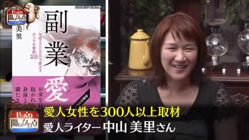 一位名叫中山美里的性產業專家近日登上日本綜藝節目《じっくり聞いタロウ》,討論這個世代由於網路的發達,許多年輕人在求學期間就能使用交友軟體、社群網站等,透過網路去尋找所謂的「財路」,因而衍伸出了「兼職小三」風潮,這種兼職小三比過去傳統的包養不同之處在於,可以選擇固定男生談條件,按「次數」或「天數」付款,意思等於是雙方都可以「想要有關係再發生關係」,不需要被契約綁死。