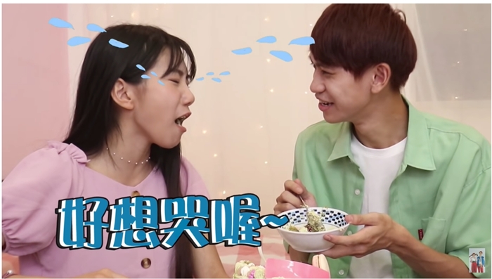 家寧一吃立刻感覺到不對勁,但仍不信邪地再吃第二口,接著她眼眶泛紅充滿著淚水,但不是因為感動,而是因為太辣啦!最後Andy老師再出招,拿出家寧想買很久的「air pods」,不過Andy準備的是特大版本,也就是蓮蓬頭本人!蓮蓬頭和耳機的相似程度,讓家寧就算被整也笑到不行直呼「真的好像!」
