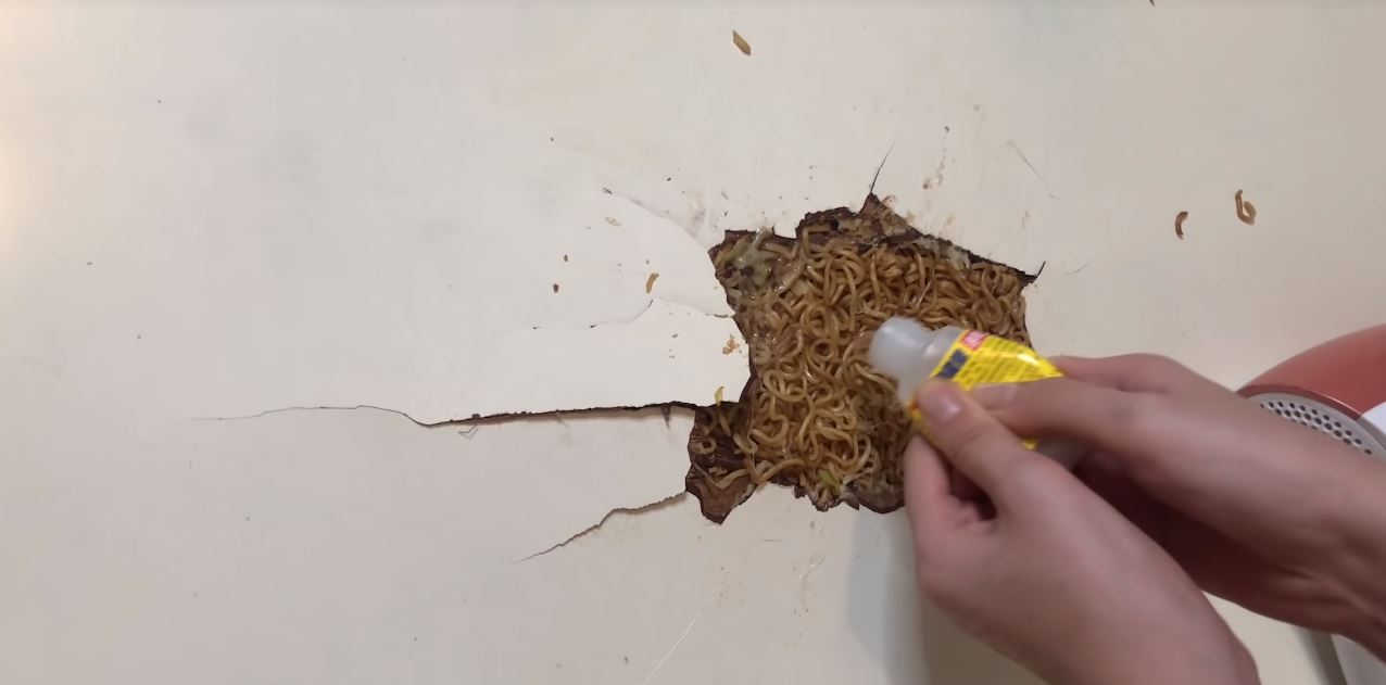 「美麗妄娜」用泡麵補丁桌子!沒有缺洞「先用斧頭把桌子打爆」找到天份:不用當Youtuber了