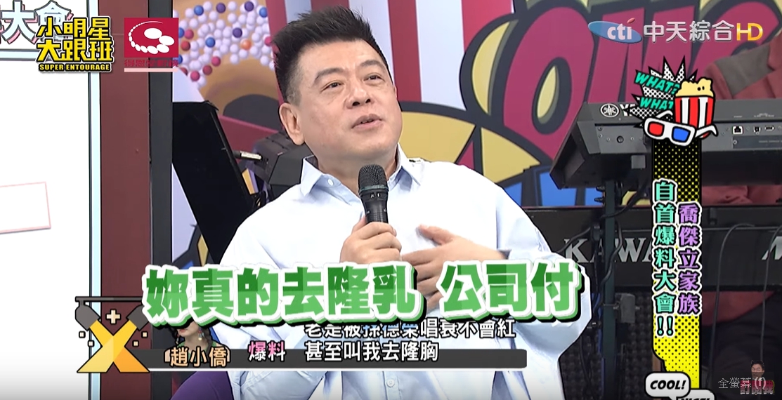 趙小僑隨後講述,孫德榮認為她講話太快太有條理,在亞洲的演藝圈中會吃不開,而當時正流行性感的模特兒風格,所以孫德榮才會叫她去隆乳,不過她稱自己:「沒有辦法」,並補充:「我不能告訴大家,靠保養有天醒來胸部就變大了。」,主持人吳宗憲還故意開玩笑的說「隆乳完,臉也看起來小一點,之後介紹出場,還可以說是『隆』重登場!」