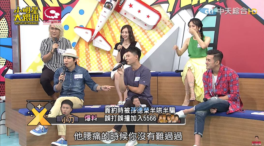 孫德榮解釋「因為我5566進度完全趕上啦!」直說以前為了小刀,5566的表演常常會延遲一、兩個禮拜,就為了要等他記舞步,Sandy聽了忍不住笑說:「他本來是老鼠屎嗎…」小刀尷尬直說:「delay到天亮是有啦…」坦言自己學舞真的比較慢。