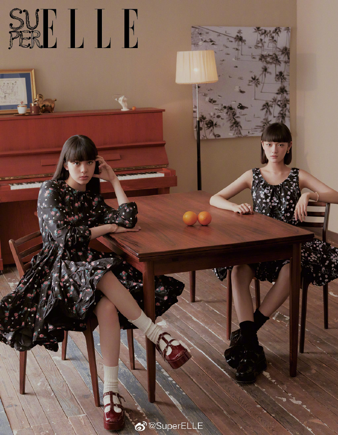 年僅16歲的文琪從小接觸戲劇,憑藉電影《血觀音》拿下金馬獎最佳女配角,小小年紀卻擁有精湛演技,前程備受看好。這次和歐陽娜娜一起登上《SuperELLE》2019秋季刊封面,展現她們的Girl Power。歐陽娜娜在雜誌裡妝容簡單素淨,顯現少女的天生麗質,其中一張文淇和歐陽娜娜坐在椅子上,同樣穿上深色花朵連身洋裝,文淇眼神更顯凌厲,整體造型更加霸氣。