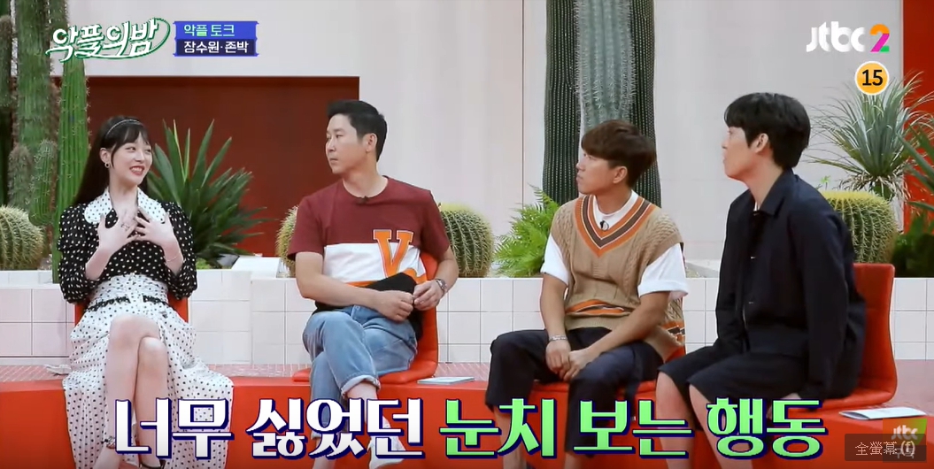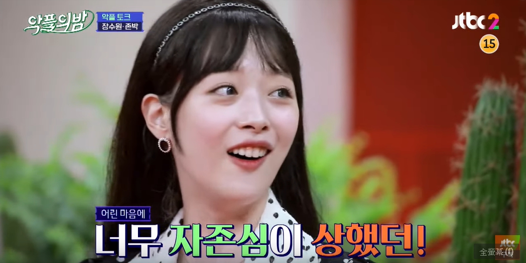 接著,她回憶過去在公司時,有公司高層要來觀看練習生練習的結果,而她當時選擇「不那麼認真」跳的故事,她提及「當時公司高層要來看練習生們練習的成果,許多練習生會因為高層要來,故意裝得很有活力的樣子,但我當時真的非常的累,而且我知道舞蹈教練已經看到我了,所以我就不想要裝作自己很有精神麼模樣,用我所剩的力氣去跳就好,我也不想因為要去迎合高層人士就裝的不像我自己,這樣很傷我的自尊。」