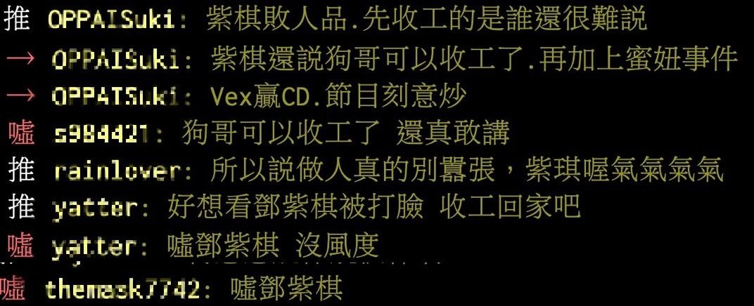 在第9集節目中,熱狗與張震嶽戰隊痛失了兩名愛將:Cream D以及Capper,雖然選手們被淘汰後表現的相當大器,但熱狗也不捨直呼:「可是我們超難過的」,然而在節目最後的預告片段中,節目將鄧紫棋對潘瑋柏說:「狗哥可以收工了」這句話進行剪輯,同時也在PTT上引發熱議,當時網友們紛紛表示:「噓鄧紫棋 沒風度」、「狗哥可以收工了 還真敢講」、「雖然是紫棋粉 但覺得紫棋在新說唱很沒風度」,當時大家都以為是針對熱狗即將團滅,鄧紫棋才會說出這句話。