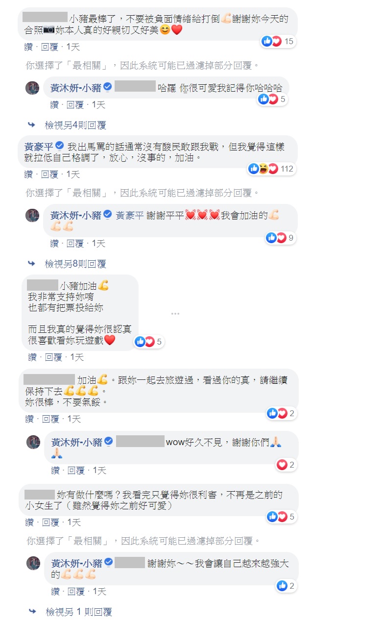 圖片來源/截取自 黃沐妍-小豬 留言區