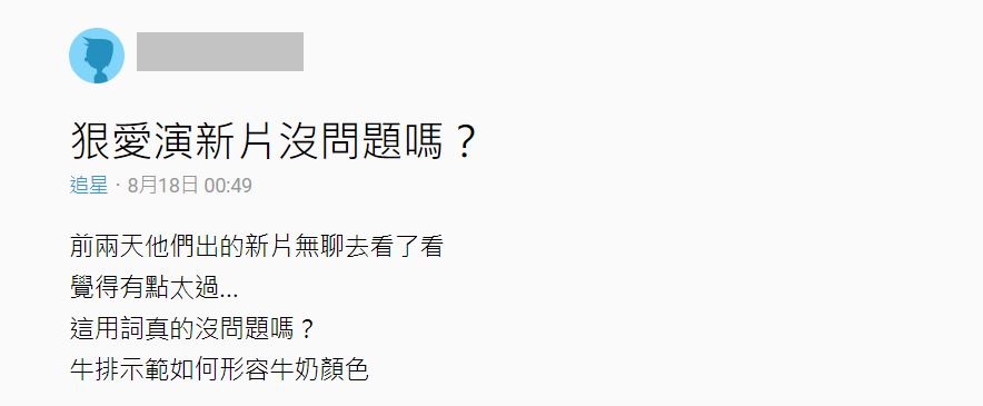 然而,也因為「牛排」接下來所說出的這大一段話,讓網友直呼「有點太過,這用詞真的沒問題嗎?」,只見影片中「牛排」表示要以與一般人不同的詞彙來形容事物,接著便說出「這杯精X白的牛奶,看起來真好喝」、「這杯乳X粉紅多多綠,看起來非常的好喝」,之後,成員「蛇丸」更學以致用地加碼說道「X門棕的咖哩飯」。