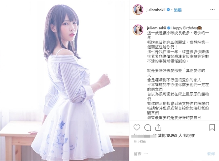 咪妃去年和Youtuber「Joeman」公開認愛,卻在今年7月時宣告分手結束戀情,在網路上掀起一波話題,同時咪妃也被網友謾罵「腦袋都是鈔票」,讓她曾發過不少限時動態回覆,飽受輿論壓力的痛苦。經歷一年的風風雨雨,咪妃在19號迎來生日,藉機在Instagram透露自己的心聲。